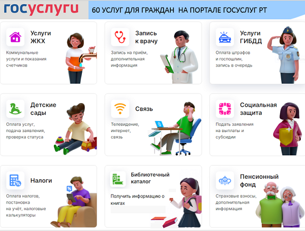 На портале Госуслуги Республики Татарстан https://uslugi.tatarstan.ru/?fb для граждан представлено более 60 услуг. Есть услуга «Библиотечный каталог». Чтобы получить информацию о книгах, вас перенаправляют на сайте Национальной электронной библиотеки Республики Татарстан — https://kitap.tatar.ru/ru/. Не все могут пользоваться этими услугами. Библиотекари могут помогать населению в этом вопросе.