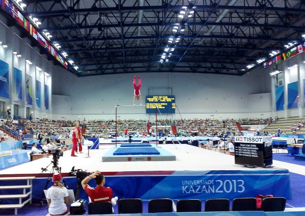 В Казани мы были на второй день Универсиады в Центре гимнастики, где проходили соревнования гимнастов. Мы смотрели спортивную гимнастику — мужские команды.