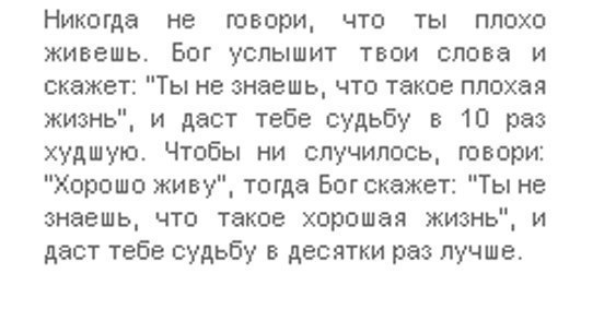 — Вот видишь! У тебя есть то, что не купишь и за 10 миллионов, а ты стонешь и жалуешься на невезучесть и бедность. Научись правильно распоряжаться тем богатством, которое у тебя есть!