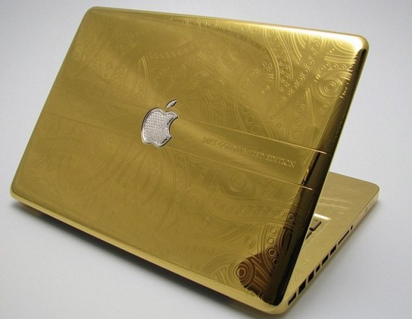 Золотые телефоны, инкрустированные разноцветными бриллиантами, начали выпускать с момента их появления. Следом за ними стали выпускать ноутбуки, компьютеры, флешки, мышки и так далее.