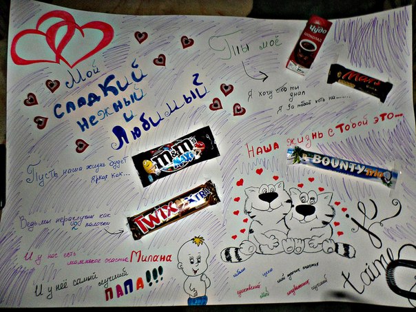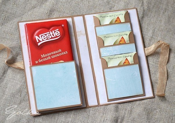 Также из шоколадных батончиков можно сделать оригинальный сладкий подарок.