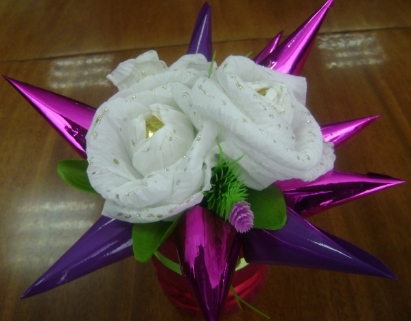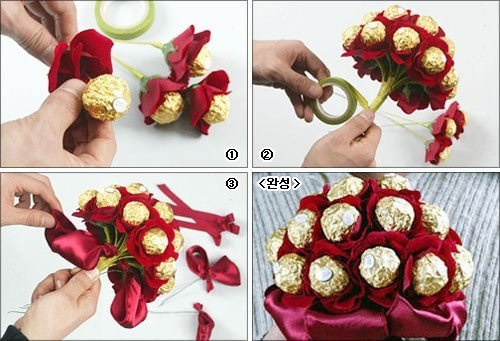 Альтернатива живым цветам — букет из конфет.