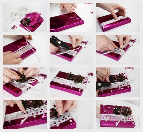 Яркая шелковистая бумага, цветные ленты и тесьма могут превратить подарок в настоящее украшение. Если вы дарите подарки сразу нескольким членам семьи, снабдите каждый ярлычком с остроумным текстом, чтобы никто не перепутал. Держите в доме несколько лишних сувениров на случай, если объявятся незапланированные гости.