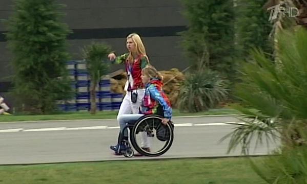 До места соревнований Ольга с отцом добирались на «Ласточке», в пути были примерно часа полтора. При резких подъёмах уши закладывало. Затем пересели на автобус и их повезли на «Розу Хутор». Дальше они пересели на канатную дорогу. Сели в вагончик на человек тридцать и поехали через горы. Вниз смотреть было страшно: пропасти, ущелья. Дальше надо было идти пешком по лестнице, а инвалиды и пожилые люди перемещались на лифте (в горах был лифт!). Они не поднимались наверх, а наоборот спускались вниз. Затем они снова сели в автобус, который подвёз их к зрительским трибунам. Добирались они примерно 2−2,5 часов.