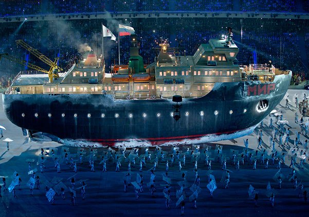 9. Ледокол. Вспышки фейерверка и низкий протяжной гудок возвещает о приближении огромного ледокола. Подобно паралимпийскому движению, он ломает лёд непонимания, разрушает барьеры между людьми, помогает преодолеть стереотипы.