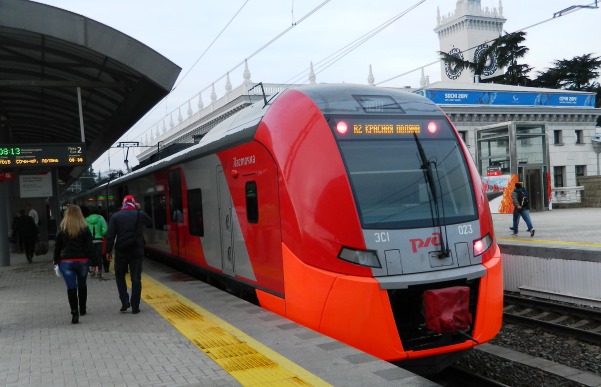 Ласточка — это скоростной электрический поезд, который везёт на олимпийские игры. Проезд в электропоезде был бесплатный для всех обладателей паспорта болельщика. В принципе проезд был бесплатен для всех, любой мог проехать до места Олимпиады. Прежде чем зайти в поезд, их снова проверяла служба безопасности.
