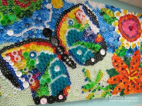 Картины из пуговиц, крышек и пластиковых бутылок