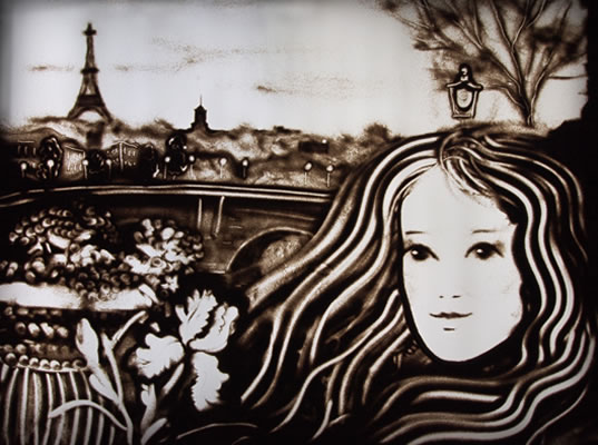 Из песка создают анимационные фильмы подсвечивая с задней подсветкой стекла