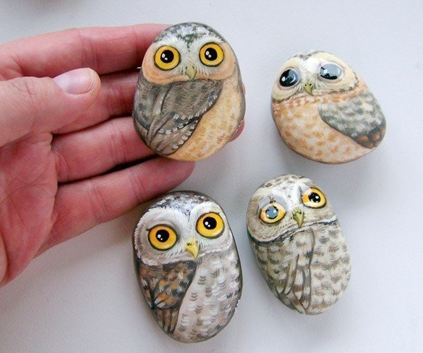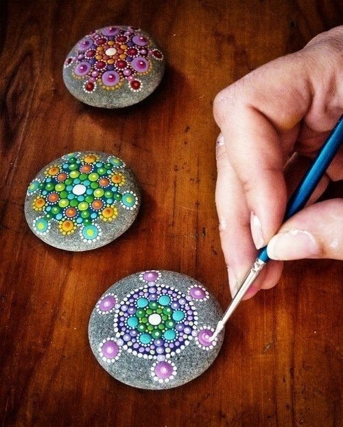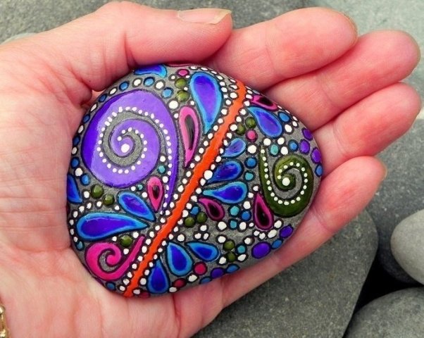 Техника росписи на камне бывает разная, вот, к примеру, точечная.