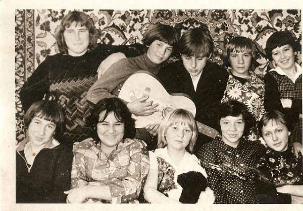 Возле Деда Мороза Абдуллина Гузяль, Полякова Ирина, Давлетшина Клара. Во втором ряду: Горшков Андрей, Игамбердыев Марат, Поляков Андрей, Борискин Олег, Абдуллин Азат. Лежат: Абдуллаев и Тошбаев Сальвар