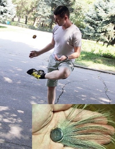 Лянгу помните? Это кусочек шкуры с шерстью, к которой снизу была пришита пластинка свинца диаметром 2−3 см, толщиной около 3 мм. Необходимо было набить лянгу ногами, не роняя её на землю, определенное количество раз разными методами. Нам соседи и учителя постоянно говорили, что мы можем паховую грыжу заработать.