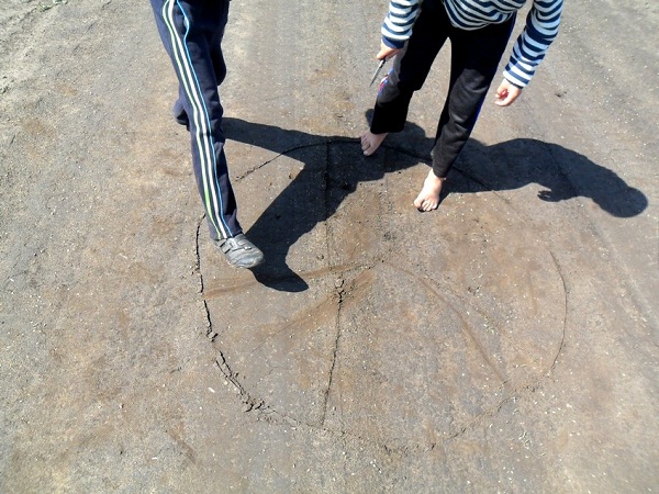 А игру в «Ножички»? На земле чертится круг, разделённый на сектора («Земля») по числу играющих. Игрок, стоя на своей «Земле», кидает нож, чтобы он воткнулся в чужую «Землю», граничащую со своей. Граница между своей и захваченной «Землёй» стиралась, новой границей становилась прочерченная линия. Выбывал из игры тот игрок, который уже не мог простоять на своём участке определённый отрезок времени.