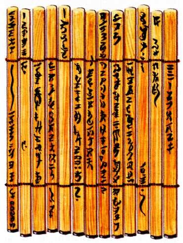 Первыми книгами в Китае были связанные бечёвками узкие бамбуковые дощечки. На каждой планке такой книги сверху вниз писали только один столбец иероглифов. Книги из связанных бамбуковых планок так и назывались — связками.
