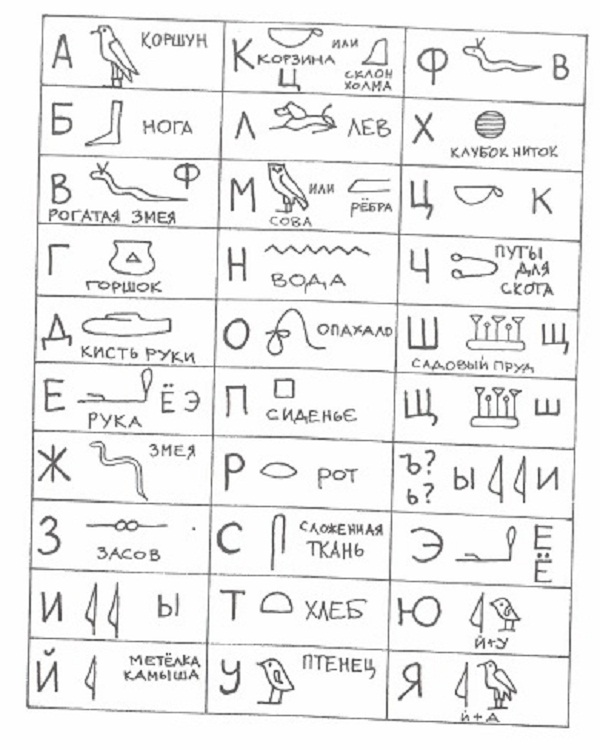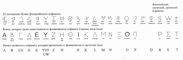 Предполагают, что использовать знаки для отдельных звуков, пришло в голову финикийцам — одному из семитских народов. Каждый знак изображал один звук. При этом у финикийцев было только 22 знака для согласных, а знаки для гласных отсутствовали. Попробуйте прочитать вот этот текст, где отсутствуют гласные буквы: «Здрвствй, сстр! Прзжй к нм звтр! Д встрч! Твй брт»». Вот так и писали финикийцы.