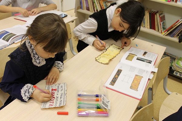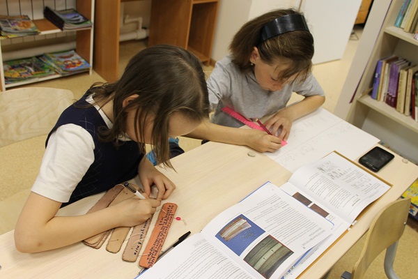 Ребята узнали историю книги, какой она прошла долгий путь, когда появились первые надписи, как изобрели алфавит, как появились буквы, что такое акрофон, пиктограммы, логограммы, чем и как писали в древности. В разделе «История книги» учащиеся узнали о глиняных и восковых табличках, свитках, папирусе, берестяных посланиях, как перевести надпись со скал и камней. Ребята увидели книги из бамбука, пальмовых листьев, пергамента, бересты, которые были сделаны детьми по книге Светланы Прудовской «История книги своими руками». Ксения Сафронова, ученица 5 класса, рассказала три древние сказки разных народов.