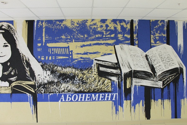 Об этом рассказывают стенды, как внутри библиотеки, так и снаружи.