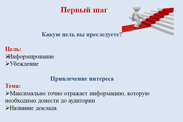 Поэтому необходимо решить: описывать ли какое-либо мероприятие или излагать новую версию. Но не надо пытаться «втиснуть» слишком много материала в ограниченное время.