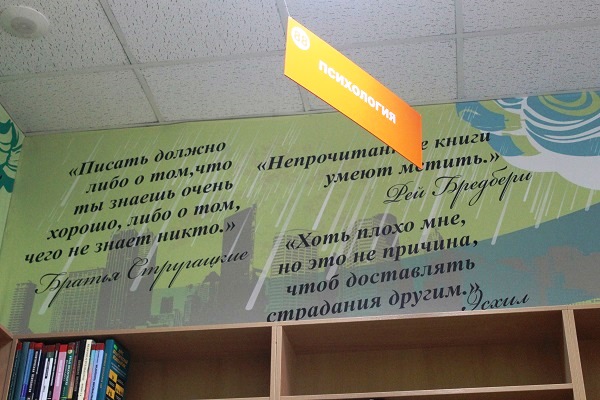 Мы заметили, что книг в этом отделе было совсем мало, львиную долю которых составляли детективы. Оказалось, что это были подаренные книги, необходимые книги можно взять на абонементе.