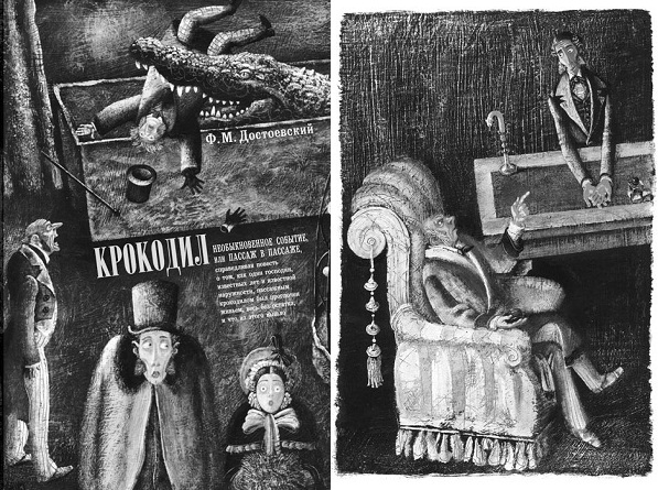 Не все знают, что у Достоевского есть сатирический рассказ «Крокодил». В воспоминаниях Достоевский описывал, что в 1864 году «в Пассаже какой-то немец показывал за деньги крокодила», что подтолкнуло его написать сатирически-фантастическую повесть в подражание гоголевскому «Носу». Это история о том, как чиновника, Ивана Матвеича проглатывает крокодил. К немалому удивлению окружающих, Иван Матвеич не только остается жив, но и совершенно доволен сложившимся положением дел. Понимая, что привлекает тем самым всеобщее внимание, пускается в фантазии о том, что теперь он сможет, вещая из крокодила, влиять на умы сограждан, неся им свет и новые теории, которые в крокодиле придумываются на удивление легко: стоит только уединиться куда-нибудь подальше в угол или хоть попасть в крокодила, закрыть глаза, и тотчас же изобретешь целый рай для всего человечества.