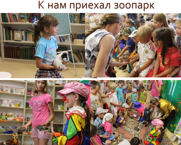 Самое первое мероприятие нашего проекта называлось «К нам приехал зоопарк». Чтобы организовать зоопарк в библиотеке дети принесли своих домашних питомцев: попугая, четыре красноухие черепахи, морскую свинку, хомяка, кролика и других. Ребята рассказали не только о своих питомцах, но и прочли стихотворения, разыграли сценки, показали кукольный и пальчиковый театр, сыграли на синтезаторе «Собачий вальс».