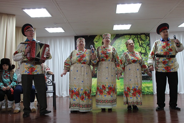 (Фольклорный ансамбль поёт песню « Гуляли Казаченьки»)
