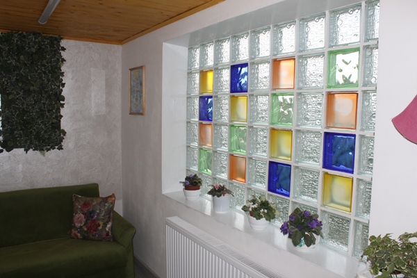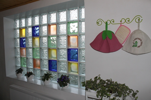 Недавно мы завершили строительство бани, в которой мне удалось воплотить многие мои дизайнерские идеи и мечты. Одна из них — это окно из цветных стеклоблоков.