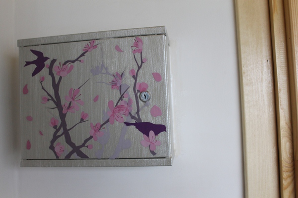 Заводской электрощит портил всю романтическую картину комнаты, поэтому я его покрыла перламутровой краской и пока наклеила цветочки и птички, позже хочу нарисовать на нём картину из акриловых красок.