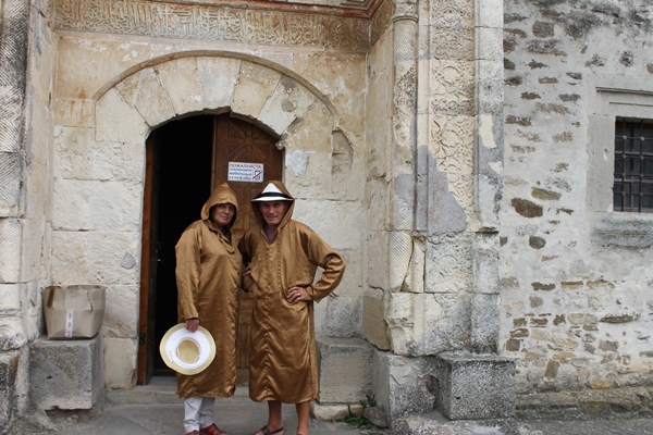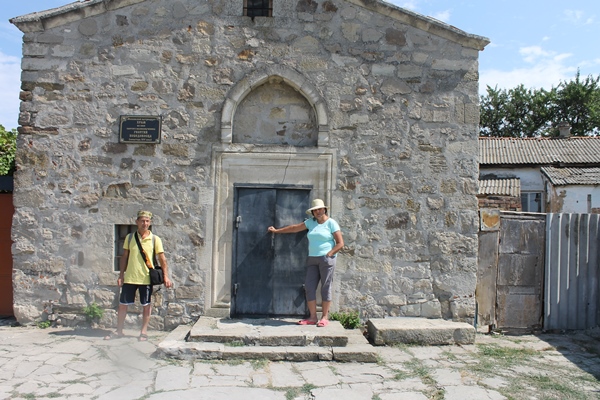 Мы посмотрели мечети, храмы разных народов и времён постройки. Так как в Крыму люди от жары ходят оголённые, а в такие заведения надо заходить с покрытой головой и закрытыми руками, и ногами. Поэтому для таких, как мы, у входа лежали коробки с одеждой.