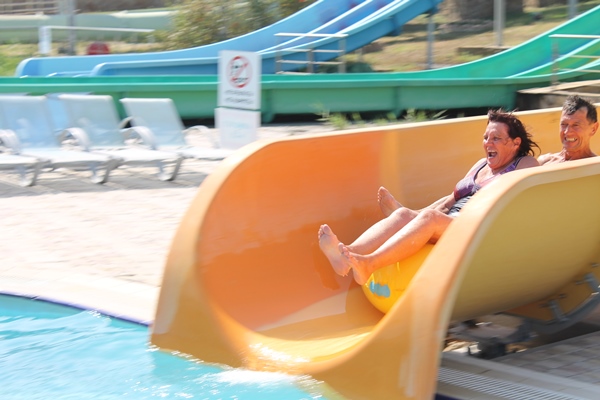 Мы с мужем впервые побывали в Аквапарке в Коктебеле. Вы посмотрите на наши лица, когда мы спускались с горки на надувной двухместной лодке. Адреналина мы получили много!