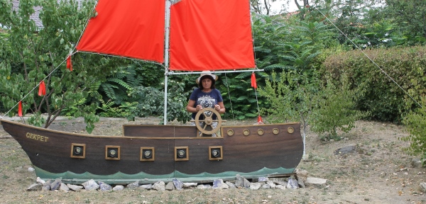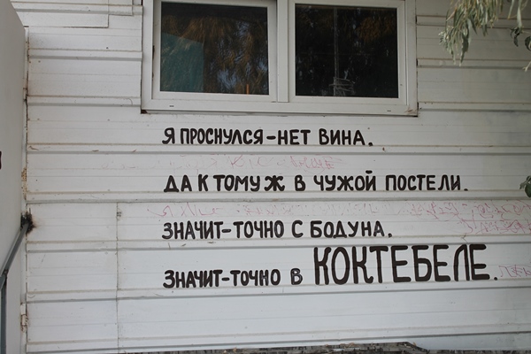 В двух домах-музеях А.С. Грина в Старом Крыму и Феодосии мне было грустно. Александр Грин жил в нищете, у него никогда не было своего жилья. И только за несколько дней до его смерти его жена купила ему домик, продав золотое кольцо, которое было значительно дороже, чем дом. Александр Грин был счастлив. В его саду до сих пор растут деревья, которые были при его жизни. Во дворах домах-музеях К. Паустовского и А. Грина туристам разрешается сорвать фрукты и съесть их. Груша была очень вкусная! На могиле Грина установлен памятник — трогательная фигурка Ассоль, бегущая в морском прибое навстречу алым парусам. Алые паруса и якоря можно увидеть везде!