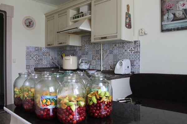 А вот собирать и кушать прямо с дерева сливу, вишню и яблоки мне нравится. По шесть ведер мы собрали разных ягод и фруктов. Всё это богатство надо переработать. Если в июне, начало июля занимаешься прополкой и рыхлением почвы, в июле прищипываешь и поливаешь огурцы и помидоры, то август — это сбор урожая и его переработка: консервирование, заморозка, сушка, закладка на хранение. Правда, в последнее время в нашем селе стали ягоды замораживать. Но так как наш огромный морозильник забит мясом, пришлось мне из ягод делать компот, варенье, вино поставили, наливку вишнёвую.