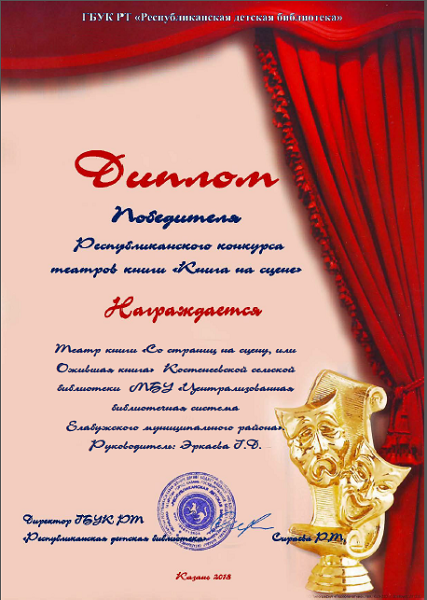 Видео-ролик спектакля отправили на республиканский конкурс среди библиотек, обслуживающих читателей — детей и подростков в республике Татарстан «Книга на сцене». Результат — 1 место! Подробнее: Мир без книг
