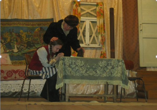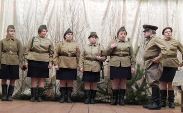 - Спектакль «А зори здесь тихие» был поставлен по одноимённой повести Бориса Васильева. Стихи для героинь повести написала жительница села Волкова А. А.