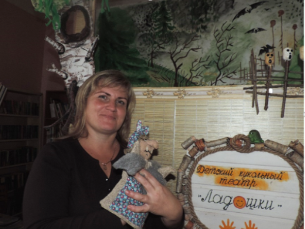 Кукольный театр «Ладошки» Ежовой Ольги Витальевны, библиотекаря Струженской сельской библиотеки-филиала МБУК «Торжокская ЦБС» Тверская область, удивил своими шикарными декорациями и куклами из чулок, которые она сшила своими руками. Я бы с удовольствием прошла мастер-класс по изготовлению кукол из капроновых чулок.