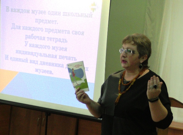Михалева Елена Юрьевна, заместитель директора по развитию МАУК «Клинское музейное объединение» Московская область, рассказала об интересном пробном пилотном проекте «Идём в музей». Проект разработан Министерством культуры Подмосковья при поддержке Министерства образования региона. Для ребят силами научных сотрудников и методистов музеев при экспертной поддержке педагогов были созданы рабочие тетради, в которых они выполняли задания во время своего путешествия. Тетради останутся у ребят, и в любой момент каждый из них сможет воспользоваться своими записями и освежить в памяти пройденный материал.