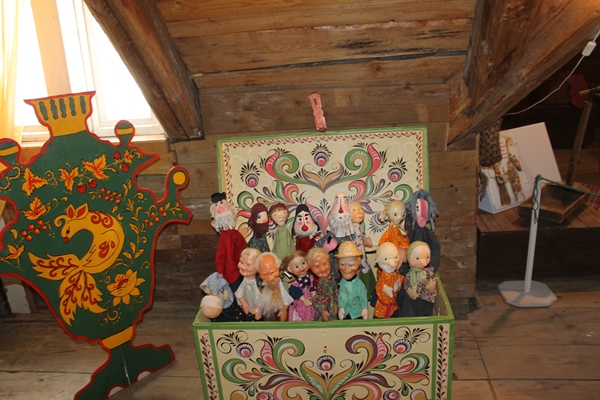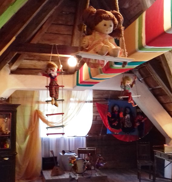 Поднявшись на чердак, который был сделан из дерева (аромат его невозможно передать), мы увидели выставку «Кукольный концерт».