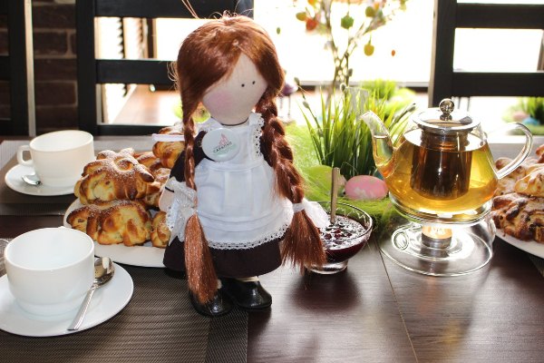 Купить коробку с путеводителем, выпить чашку кофе можно в фирменном кафе. Рядом продают сувениры: домино с изображением героев повести, рыжеволосые куклы, абрикосовый зефир. Мы все накупили сладкие сувениры.