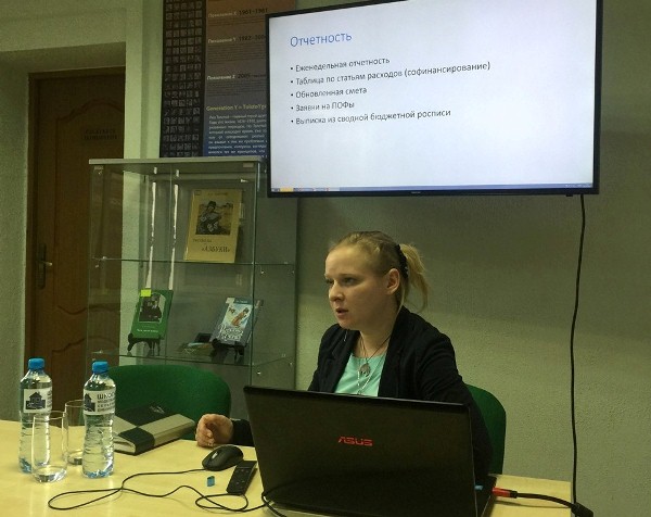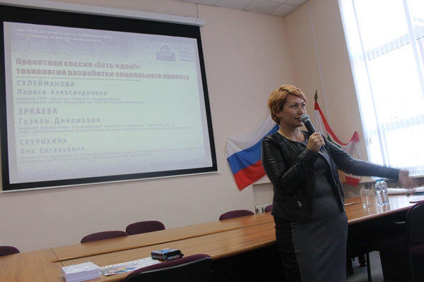 Далее Сулеманова Л.А. рассказала о социально ориентированном проекте «Библиотека для власти, общества, личности» (#Большой_проект), который стартовал 1 февраля в Приангарье. Проект рассчитан на пять лет — с 2019 по 2024 годы, включает в себя 9 подпроектов: