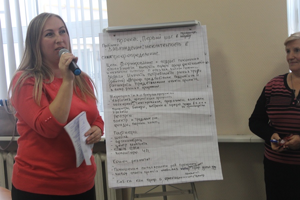 Если бы вы видели, с каким азартом и интересом работали группы над своими проектами, а какие были идеи! Приведу лишь названия проектов: «Сберечь и приумножить», «Калининградский библиобус» (Лариса Александровна предложила сделать «Краеведческий библиобус»), «Цифровой центр на селе», «Здоровое население России», «Здоровое поколение», «Чистый воздух», «Литературный парк», «Первый шаг в профессию». Победил проект «Литературный парк».