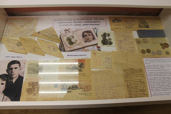 Одна семья сохранила все письма погибшего в 1944 году лейтенанта орденоносца Ефремова Ивана Семеновича. Его супруга Нина Дмитриевна сохранила все письма с 1939 по 1944 год. Писал он 2−3 раза в месяц, помнил день, когда познакомился с женой, дни рождения своих детей. Мне дали прочитать все его письма, и даже разрешили опубликовать их в моей книге и блоге. Читала письма с болью, так как знала, что он погибнет, особенно, когда он строил свои планы. Я раньше думала, что фронтовые письма были треугольной формы, оказывается, складывались они до войны ромбиком, а в годы войны треугольником. Фронтовые письма были и в конвертах, и почтовых карточках с рисунками. Писал грамотно, был начитан (в письмах делился с женой своим мнением о прочитанных книгах), красивый каллиграфический почерк. До войны, когда он учился в военном училище, любил ходить в драматический театр, интересно было почитать, какие постановки ставили в те годы. Большую часть фронтовой жизни лейтенант Ефремов прожил в землянках, как отмечали праздники, шли ожесточенные бои, обо всём рассказывалось кратко. Была также удивлена, что у офицеров в годы войны был денежный аттестат, по которому жены офицеров через военкомат могли получать зарплату своих мужей (не знаю, был ли он у рядовых солдат). Часть писем мне дали для музея.