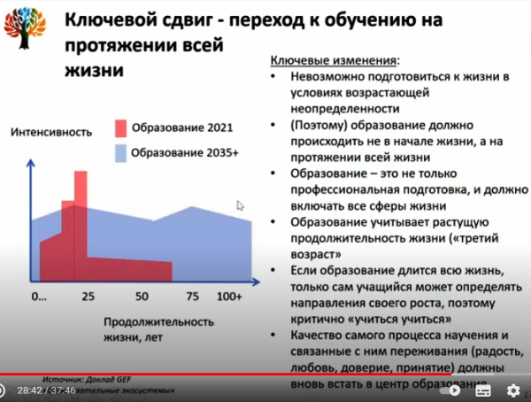 «Невозможно подготовиться к жизни в условиях возрастающей неопределенности. Поэтому образование должно происходить не в начале жизни, а на протяжении всей жизни».