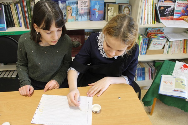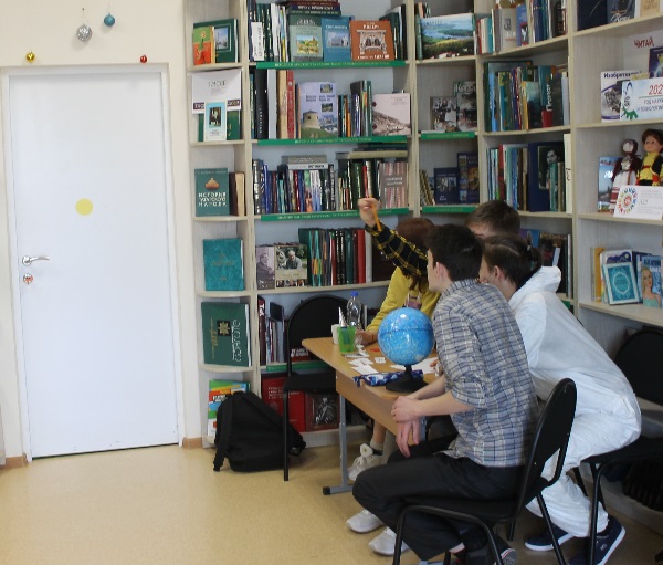 Ответы команды записывают на листок, потом зачитывают их. На полке лежат книги, в которых рассказывается о Солнечной системе.