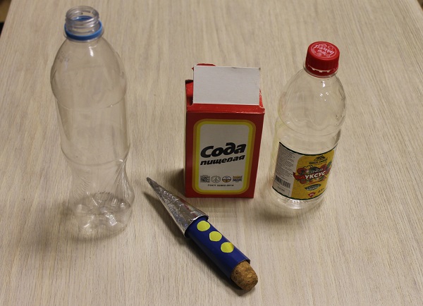 При добавлении в уксус соды начинается интенсивное выделение углекислого газа, которое мы можем наблюдать в виде тысяч пузырьков и образующейся пены. Газ, выделяющийся в процессе реакции, постепенно заполняет все пространство и, не помещаясь в заданном объеме, начинает давить на пробку — нашу ракету.